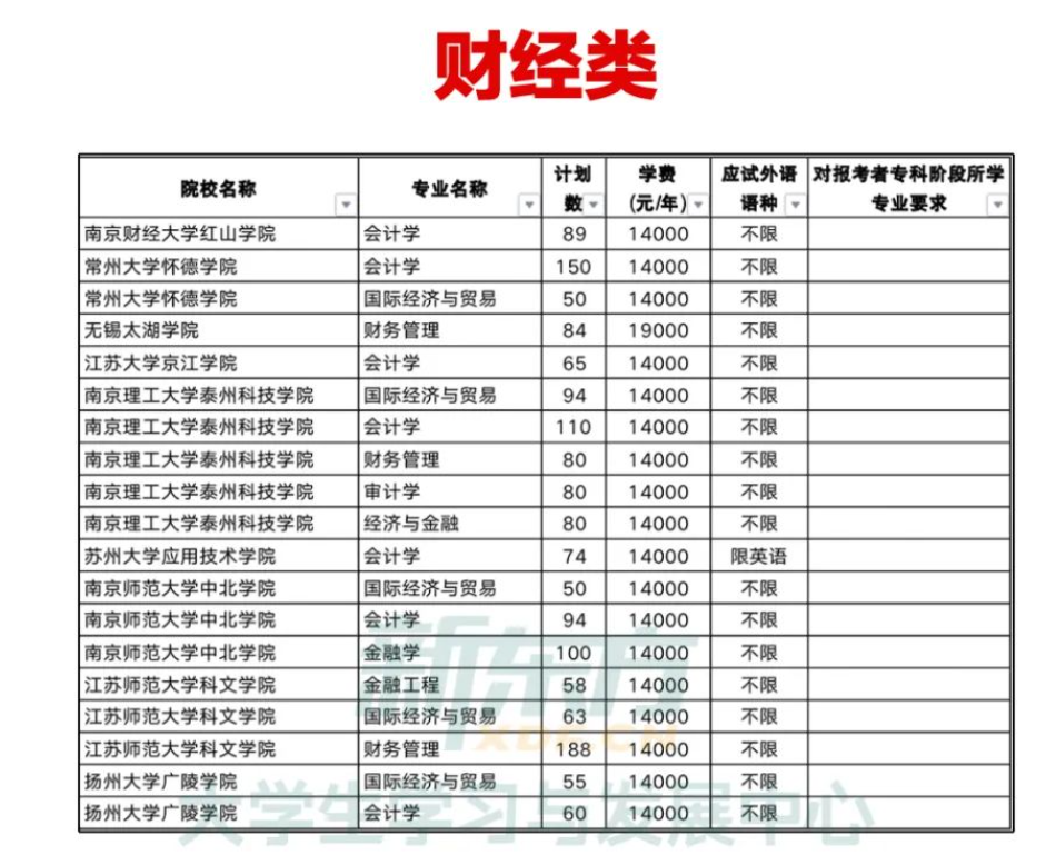 江苏专转本财经类专业可报考的本科院校有哪些?