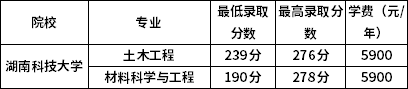 2022湖南科技大学专升本录取分数线