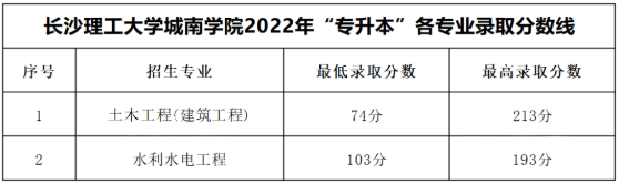 2022年长沙理工大学城南学院专升本录取分数线官网暂未公布,根据已公布的成绩和拟录取名单进行整理,仅供参考,2022年长沙理工大学城南学院专升本录取分数线准确数据请以官方信息为准。