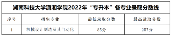 2022年湖南科技大学潇湘学院专升本录取分数线官网暂未公布,根据已公布的成绩和拟录取名单进行整理,仅供参考,2022年湖南科技大学潇湘学院专升本录取分数线准确数据请以官方信息为准。