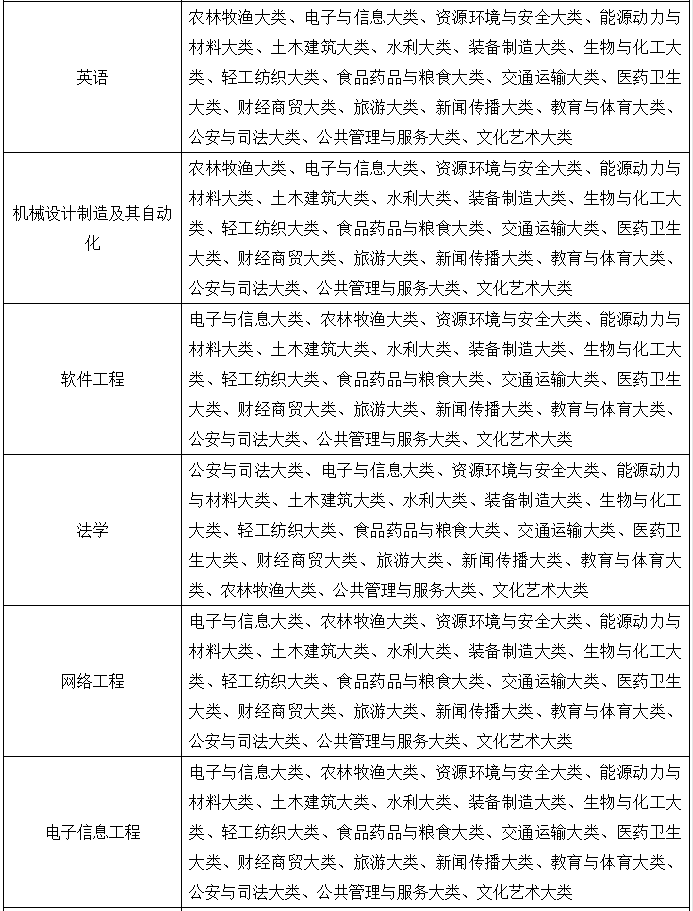 注:专业大类分类标准按照教育部高等职业教育专业目录(2015年)执行。
