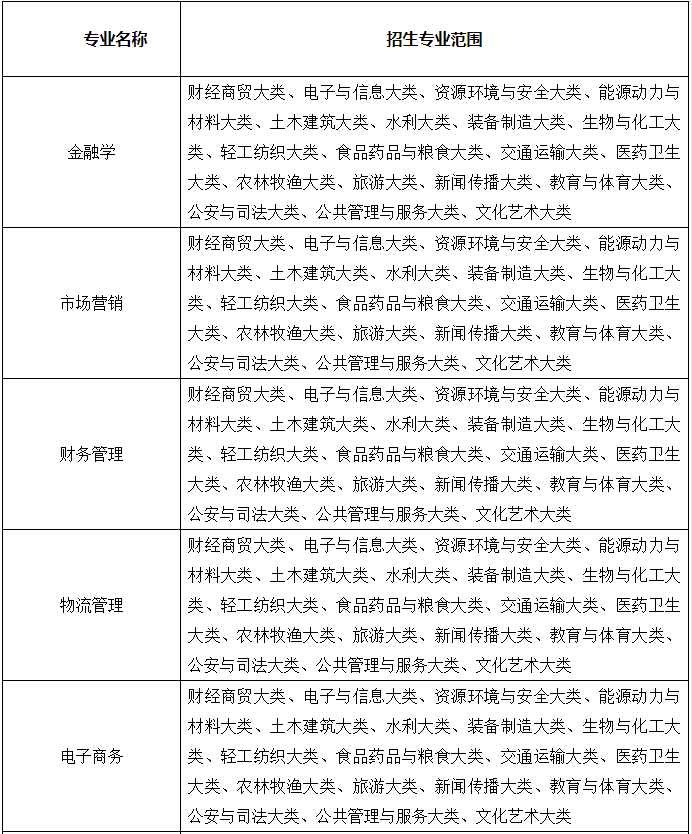 a. 申请调剂的专业与原报考专业公共课考试科目相同一致,专业类别一致,不接受跨专业类别调剂;b.公共课达到省考试院统一划定的分数线且未被任何学校录取(填报免试退役士兵计划调剂志愿考生除外);c.毕业专业须符合我校招生专业范围要求;d.考生原报考专业门类与我校调剂专业门类相同;e.按照以下顺序调剂录取:以考生的公共课总成绩为依据,从高分到低分依次录取。如公共课总分相同,则按单科顺序及分数从高到低排序,单科顺序为:英语、高等数学/大学语文。如出现若干名考生所有科目分数一致,且名次为录取考生最后一名,则按照考生提供的高职(专科) 期间各科平均成绩作为录取参考,择优录取。