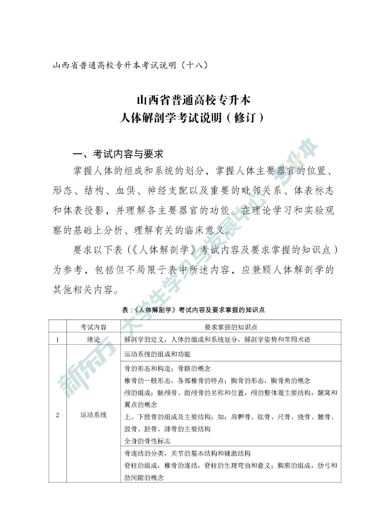 2025山西专升本医药卫生类专业课考试大纲(人体解剖学)