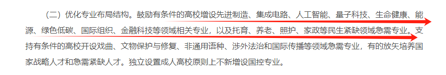 也就意味着先进制造、集成电路、人工智能、量子科技、生命健康、能源、绿色低碳、国际组织、金融科技等领域相关专业在以后可能比较吃香!托育、养老、照护、家政等急需专业以后就业会比较多选择~