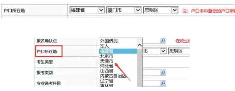 (3)重点信息—户口所在地选择