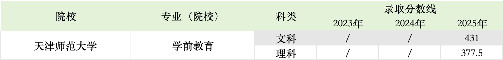 天津师范大学是2025年新增招生院校,开设学前教育专业,今年第一年招生。
