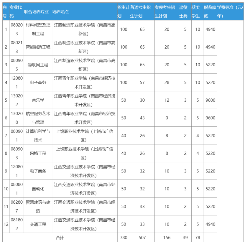 我校2025年联合培养专升本招生计划共计780人,具体情况详见表1.