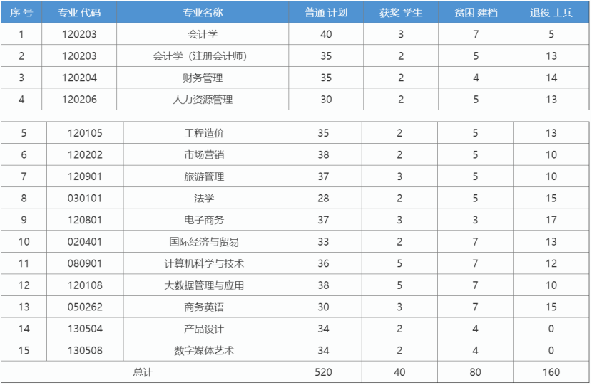 江西财经大学现代经济管理学院2025年专升本有哪些专业招生?2025年江西财经大学现代经济管理学院院校专升本各专业招生计划汇总:合计520人。一共15个招生专业,其中会计学专业招生40人,会计学(注册会计师)专业招生35人,财务管理专业招生35人,人力资源管理专业招生30人,工程造价专业招生35人。其它专业具体招生计划分配见下表。