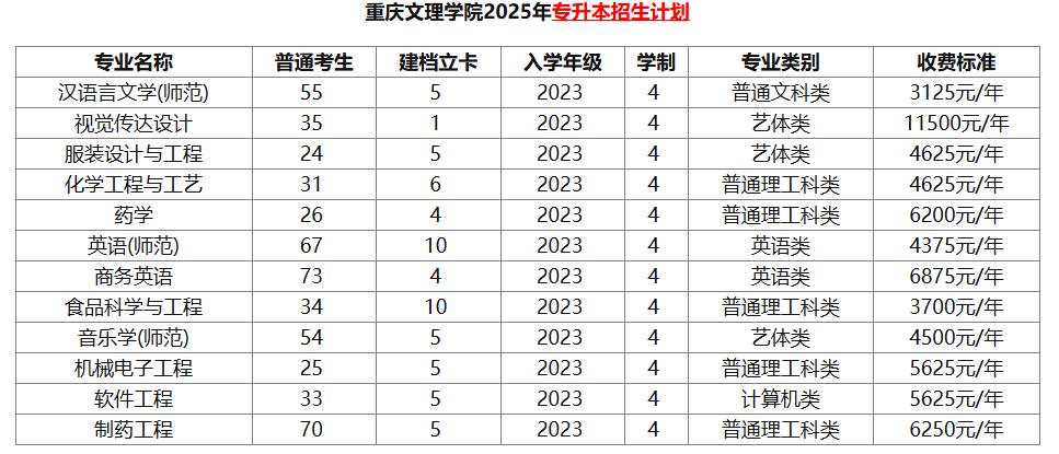 重庆文理学院2025年专升本普通计划总计招生592人,其中普通计划的汉语言文学(师范)专业招生55人,视觉传达设计专业招生35人。