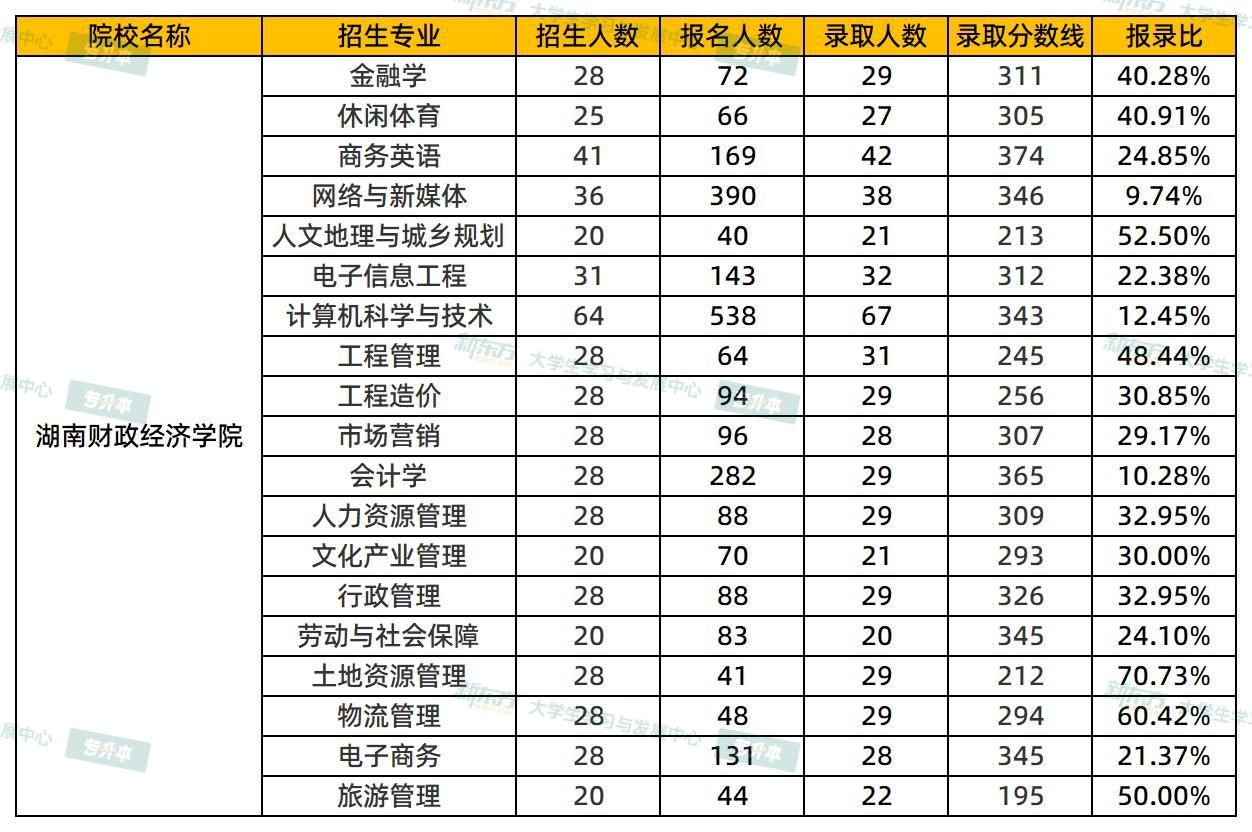 湖南财政经济学院2025专升本报录比公布!最低9%!