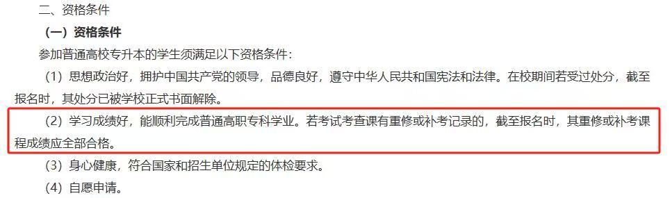 但是,大家要知道挂科不仅仅是会影响到我们毕业,如果你有专升本的想法,挂科对专升本也是有影响的,我们可以看一下重庆专升本的报考条件。