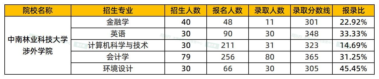 中南林业科技大学涉外学院2025专升本报录比公布:最低14.69%
