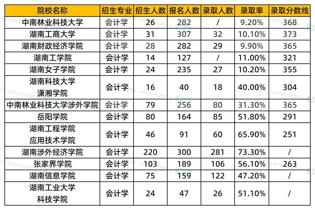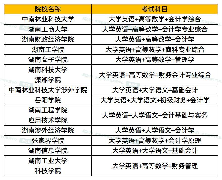根据2025年湖南省专升本会计学专业招生数据,我们整理了主要院校的报考情况和考试科目: