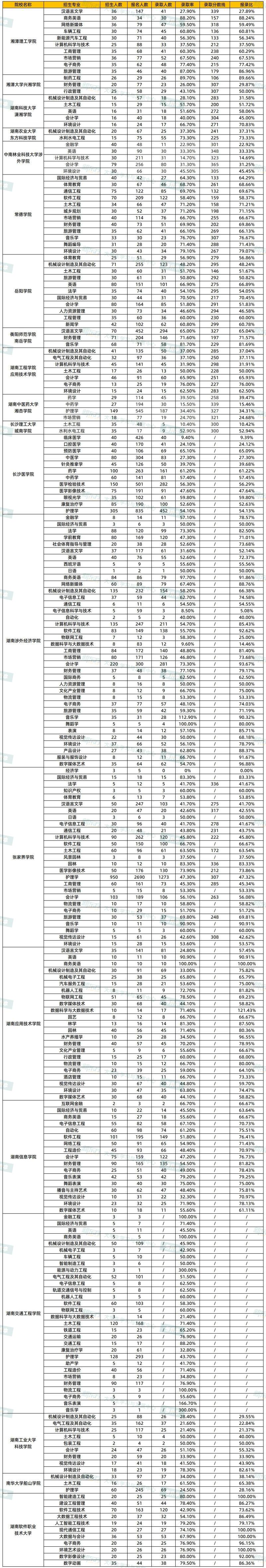 理工类专业:冷热不均。计算机科学与技术(湖南涉外经济学院,74%)报名热但录取比仍高;机械设计制造及其自动化(湖南交通工程学院,42%)竞争集中,需扎实掌握专业知识。