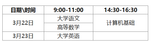 2025年我市普通高校“专升本”统一考试科目和时间安排如下: