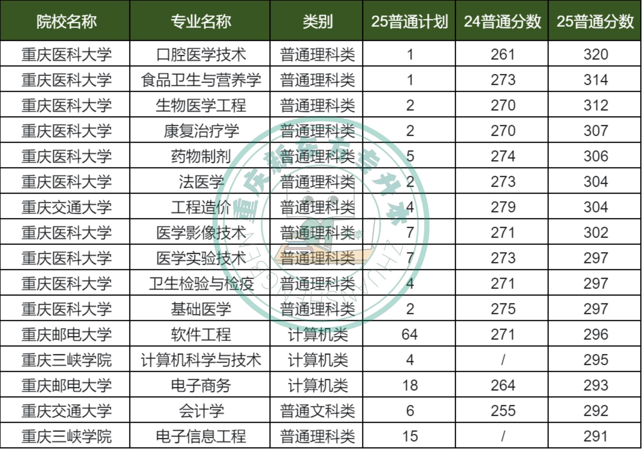25年重庆专升本超过290分的院校+专业共16个,超过300分的就有一半。从专业类别上看:基本都是理科类、计算机类专业,其中医学类专业占主导,计算机相关的算非医学类的高分专业。