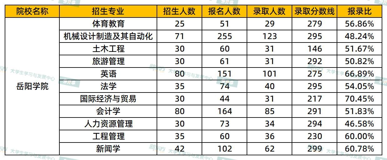 岳阳学院2025专升本报录比公布:最高70.45%
