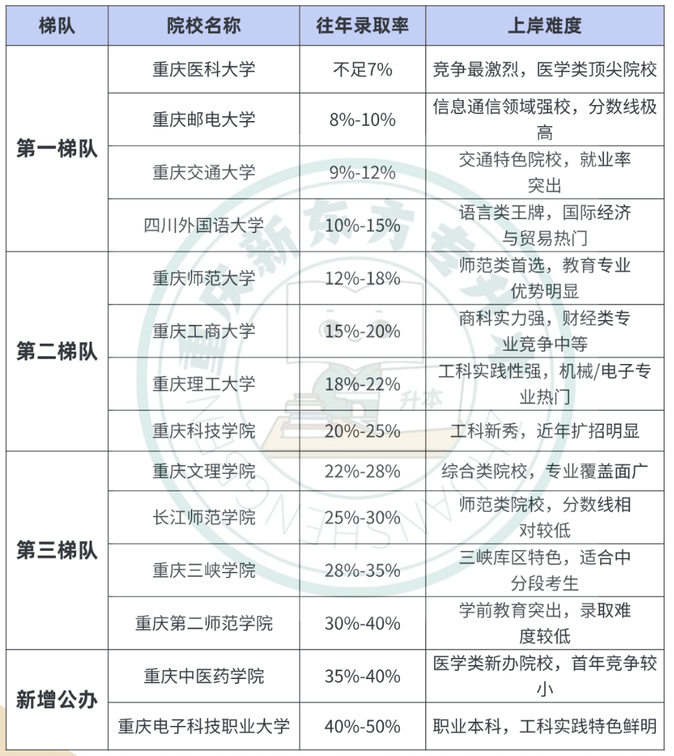 冲稳保结合:考生可以将30个志愿进行合理划分。可以选择相对较好、录取分数线可能稍高的院校及专业作为“冲”的志愿;与自己成绩和能力较为匹配的“稳”的志愿;剩下的作为“保”的志愿,以防前面的志愿没有被录取。这样能最大程度提高被录取的概率。例如,重庆某高校的王牌专业可能录取分数较高,考生可以把它放在“冲”的志愿里;而一些录取分数线较为稳定且自己比较有把握的院校专业就可以放在“稳”的志愿中。