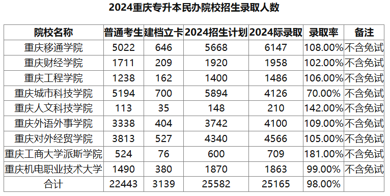 2025年重庆专升本民办典型院校超省控线100分的专业分析