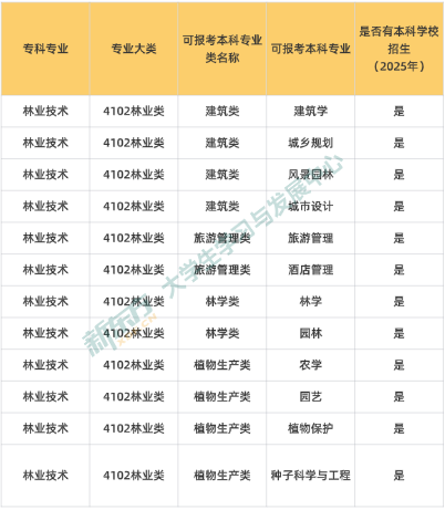 湖南统招专升本【林业技术】专业可报考的本科专业