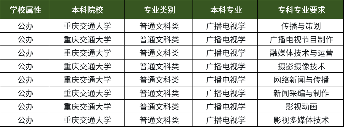 在重庆专升本考试中,重庆交通大学的广播电视学专业招哪些专科专业?