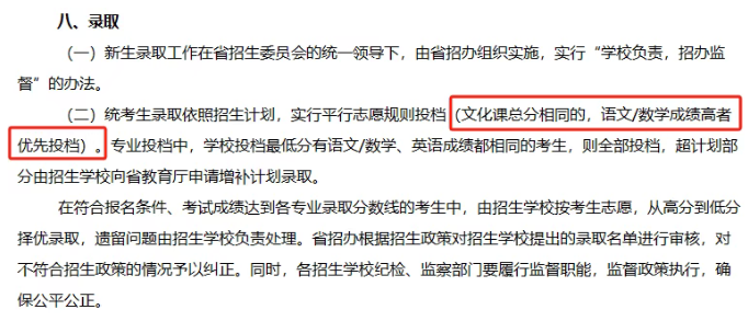 那为什么每年会出现后面的大学语文/高等数学的分数?是因为2020年开始出了新的规定——总分相同的考生会按大学语文(高等数学)的成绩从高到低顺序投档录取。