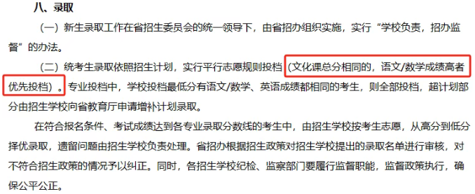 那为什么每年会出现后面的大学语文/高等数学的分数?是因为2020年开始出了新的规定——总分相同的考生会按大学语文(高等数学)的成绩从高到低顺序投档录取。