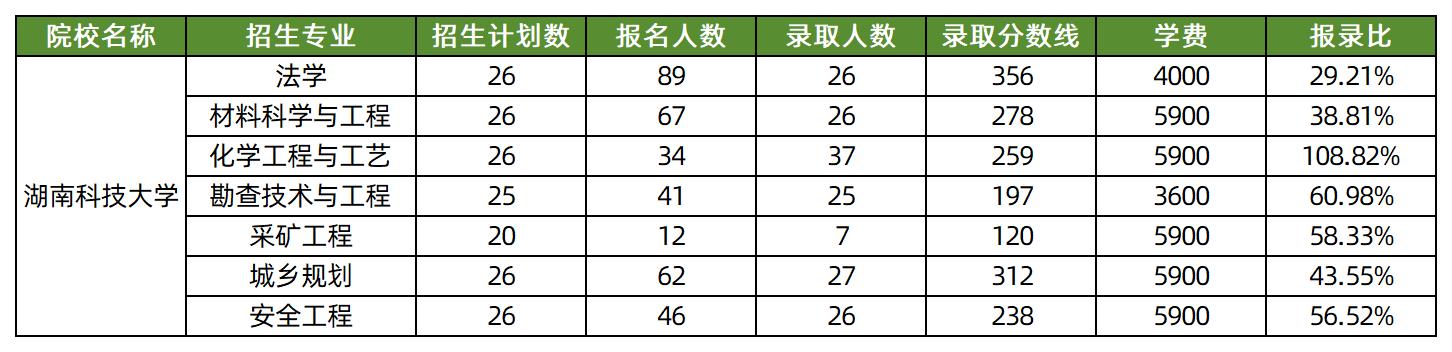 2025年湖南科技大学专升本共7个专业,录取人数共174人,录取分数线最高356分、最低120分,各专业具体招录情况汇总如下: