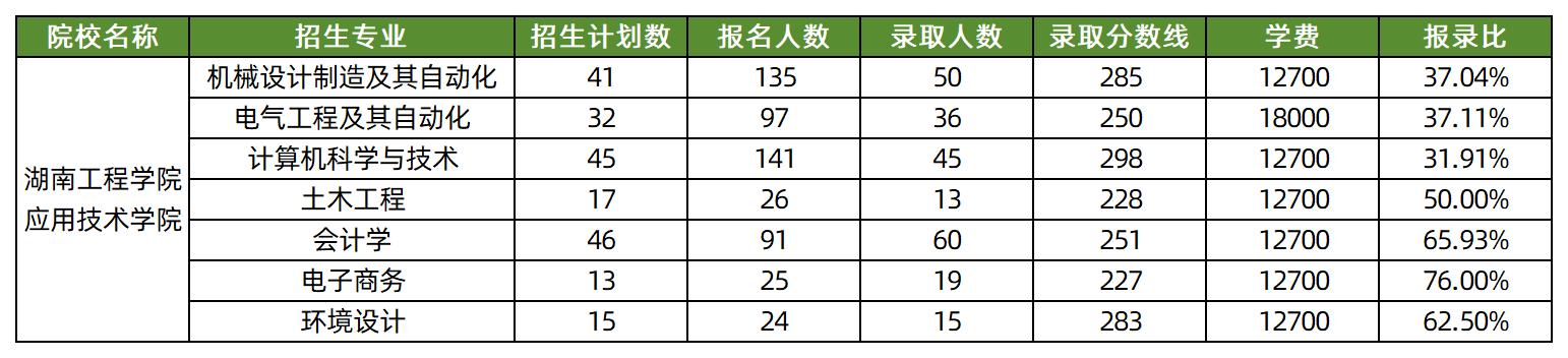 2025年湖南工程学院应用技术学院专升本共7个专业,录取人数共238人,录取分数线最高298分、最低227分,各专业具体招录情况汇总如下:
