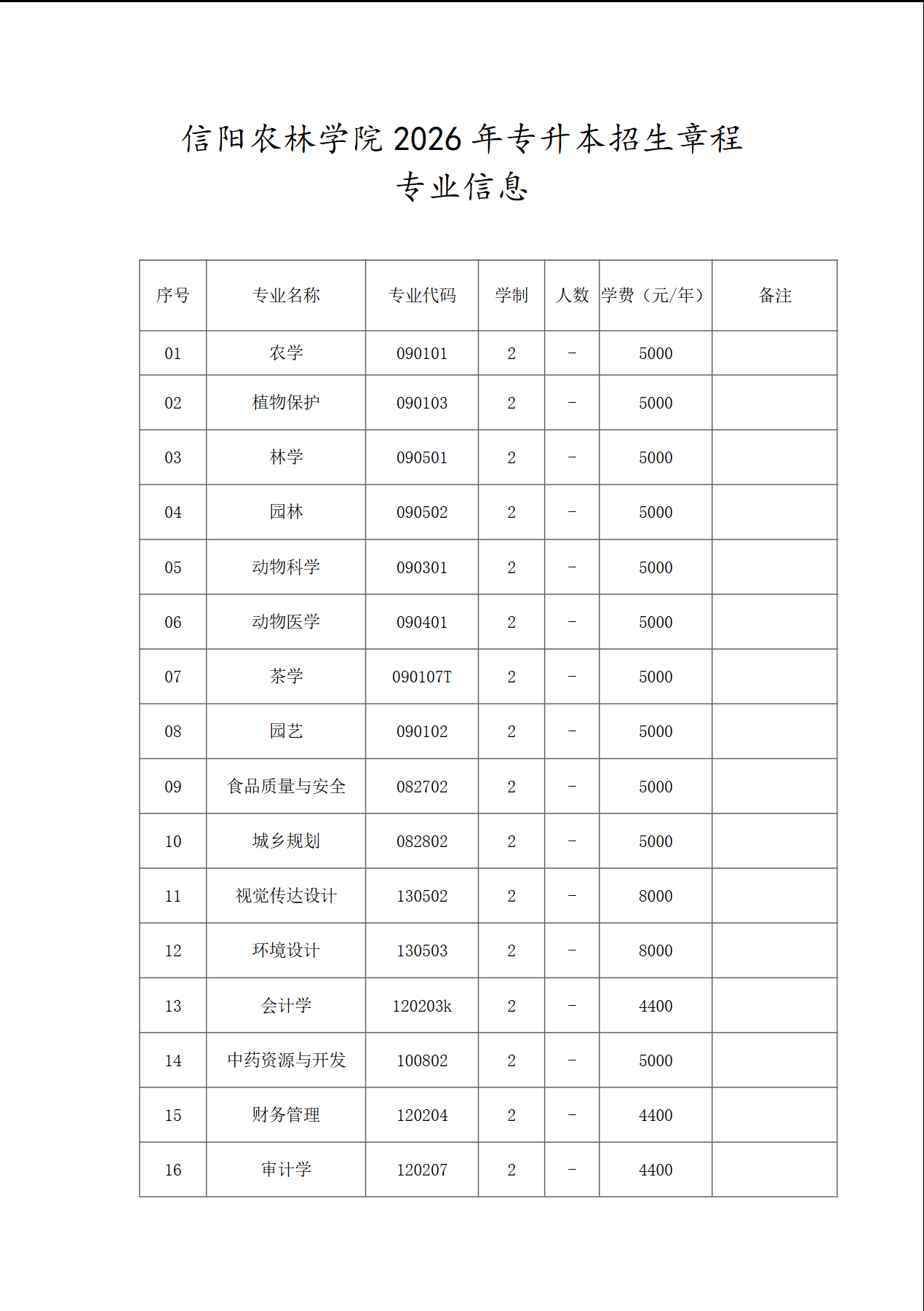 官方标题:信阳农林学院2026年普通专升本招生章程