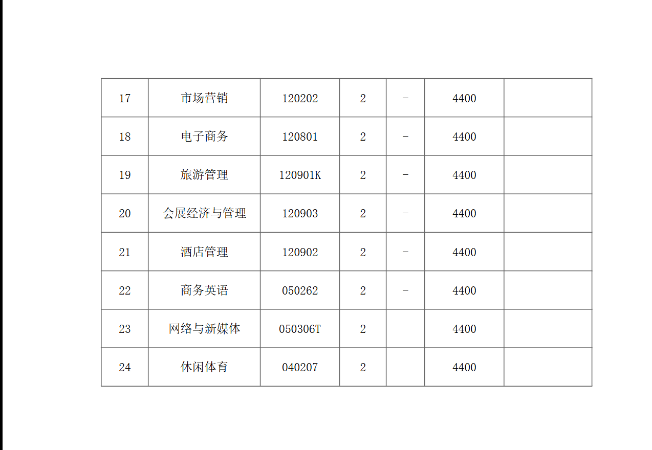 第四章 招生专业及计划