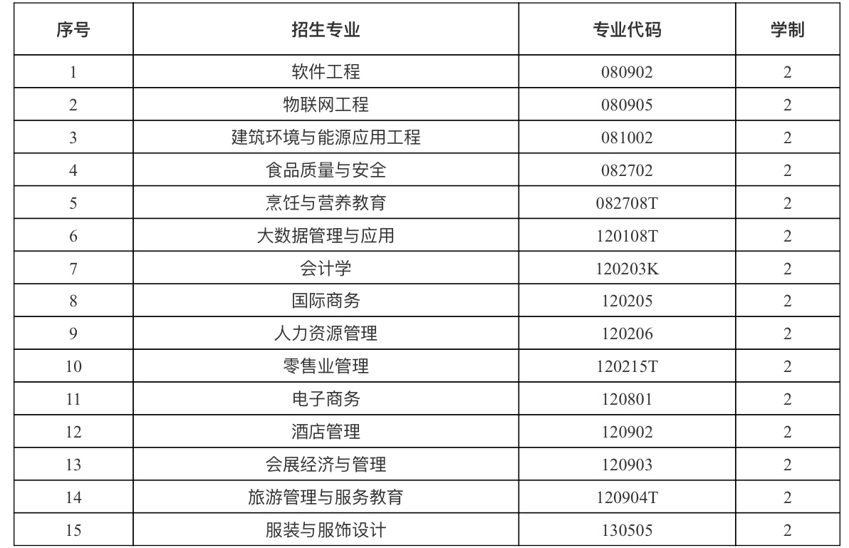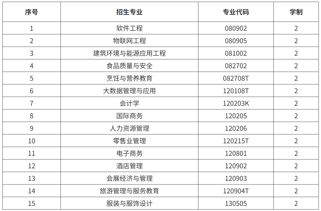 招生专业15个,详见下表。