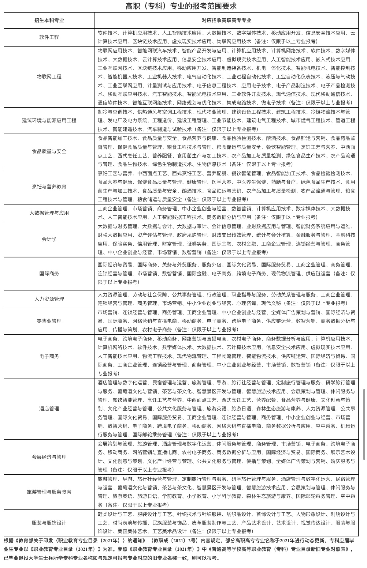 武汉商学院高职(专科)专业的报考范围要求