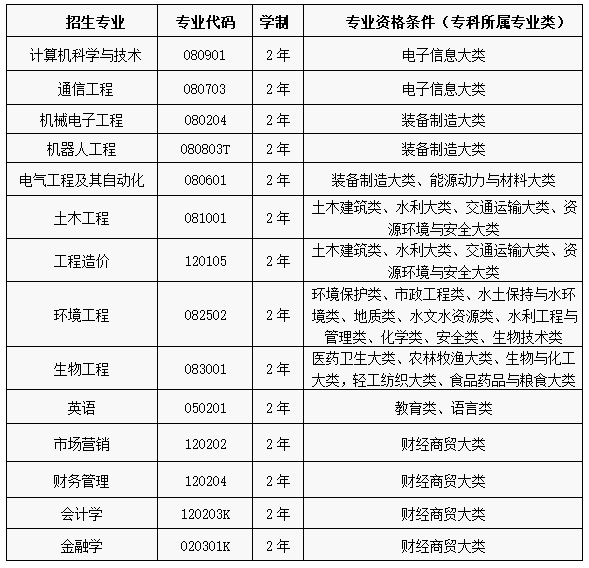 二、招生专业与报名资格条件