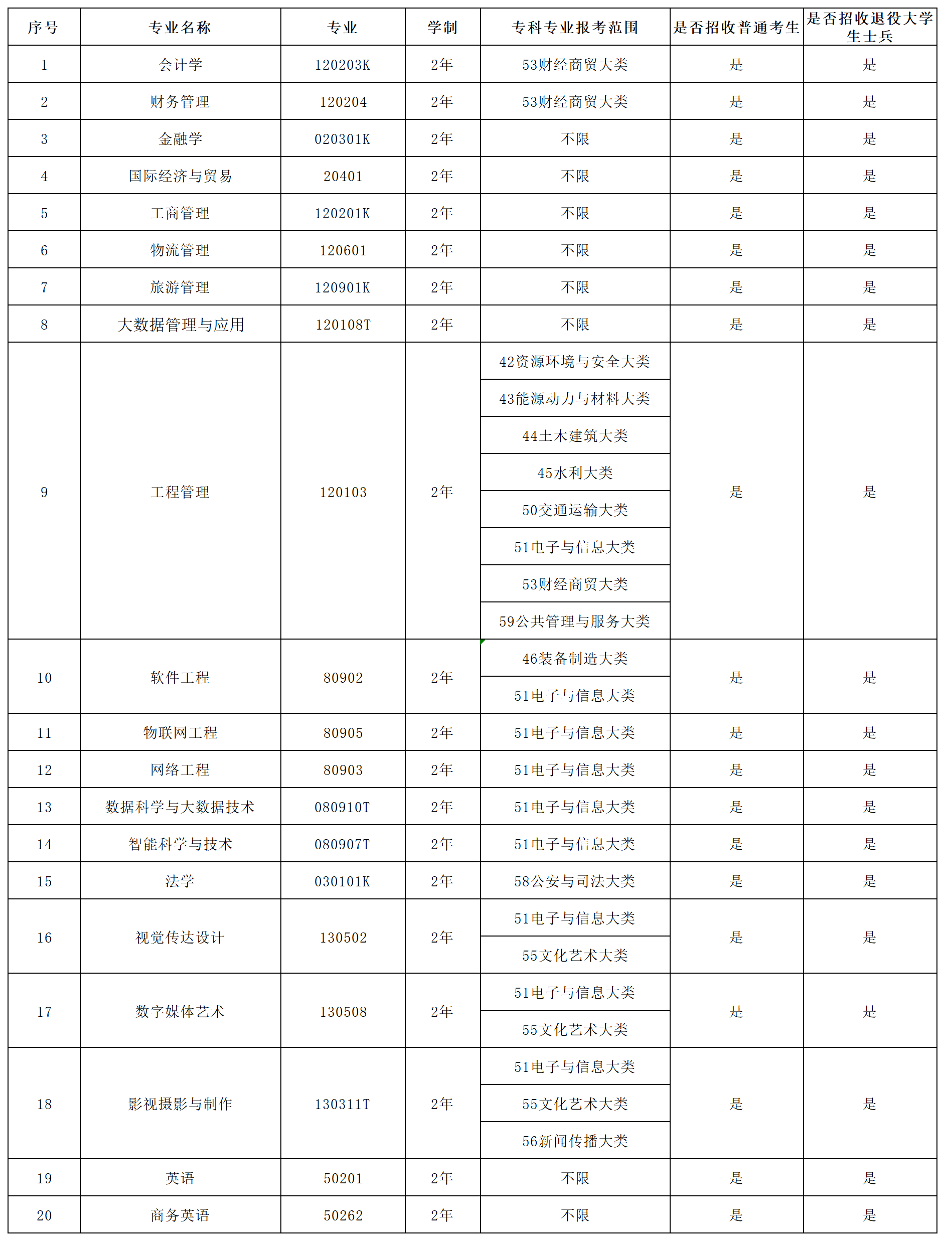 (一)招生专业