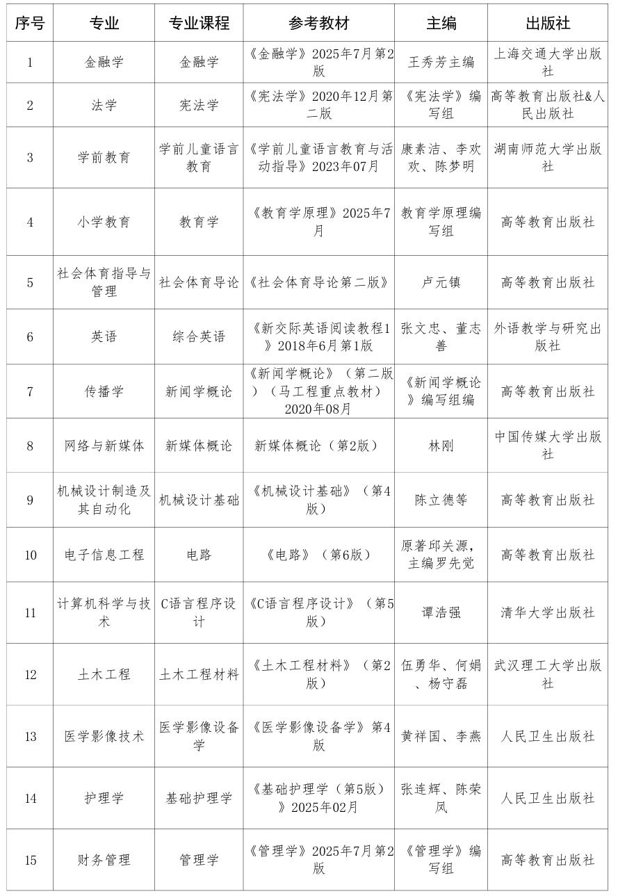 注:以上课程的考试大纲发布在武汉文理学院教务处网站专升本专栏。
