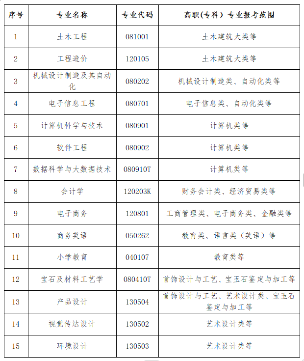 3.专科所学专业与报考专业相近或相关,具体报考要求详见招生专业及报考范围。