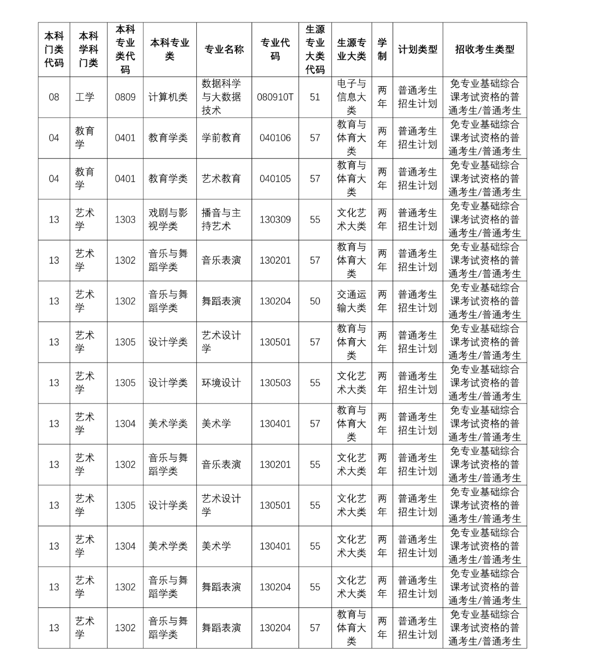 (五)旅游大类的公共基础课为数学和英语、教育与体育大类的公共基础课为语文和英语。