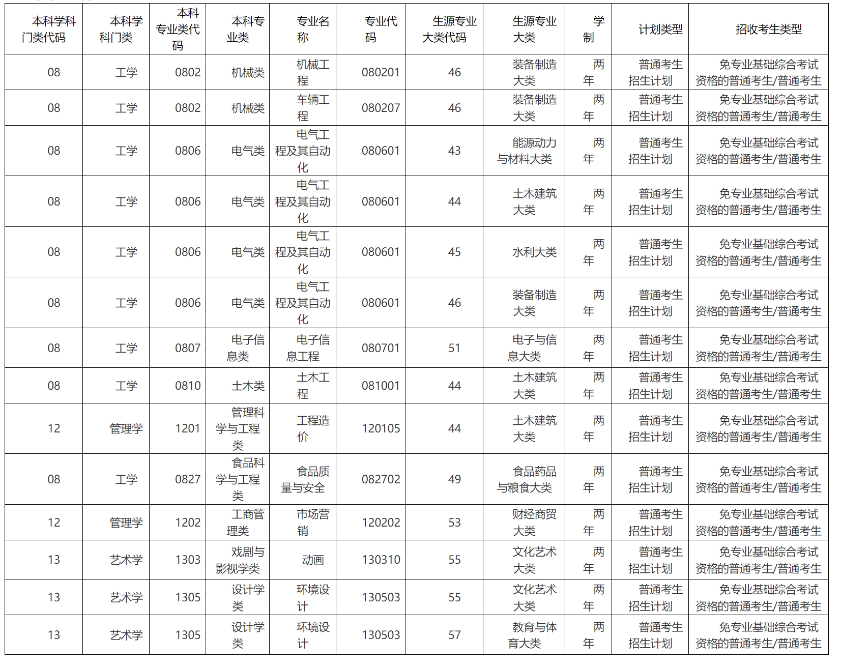 第十条 招生专业