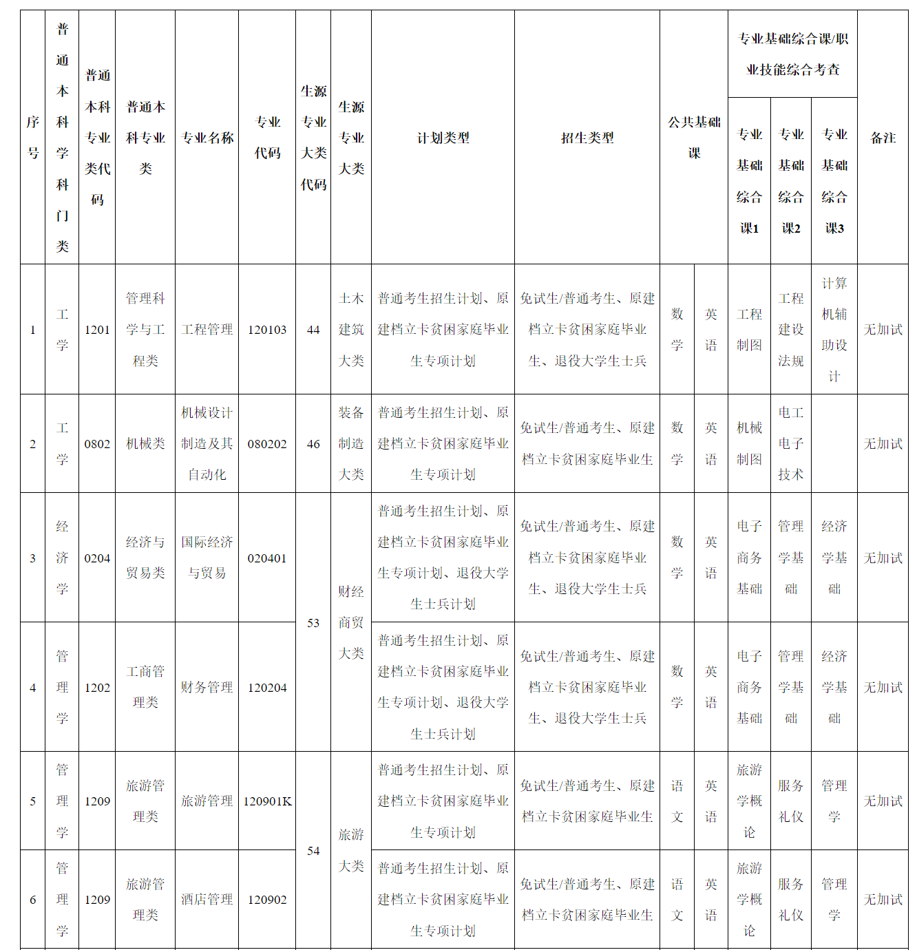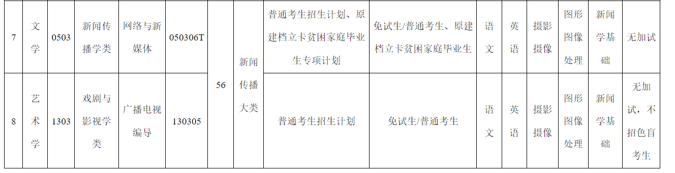 第十三条 招生专业