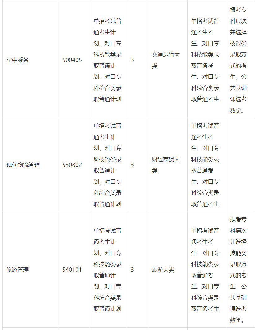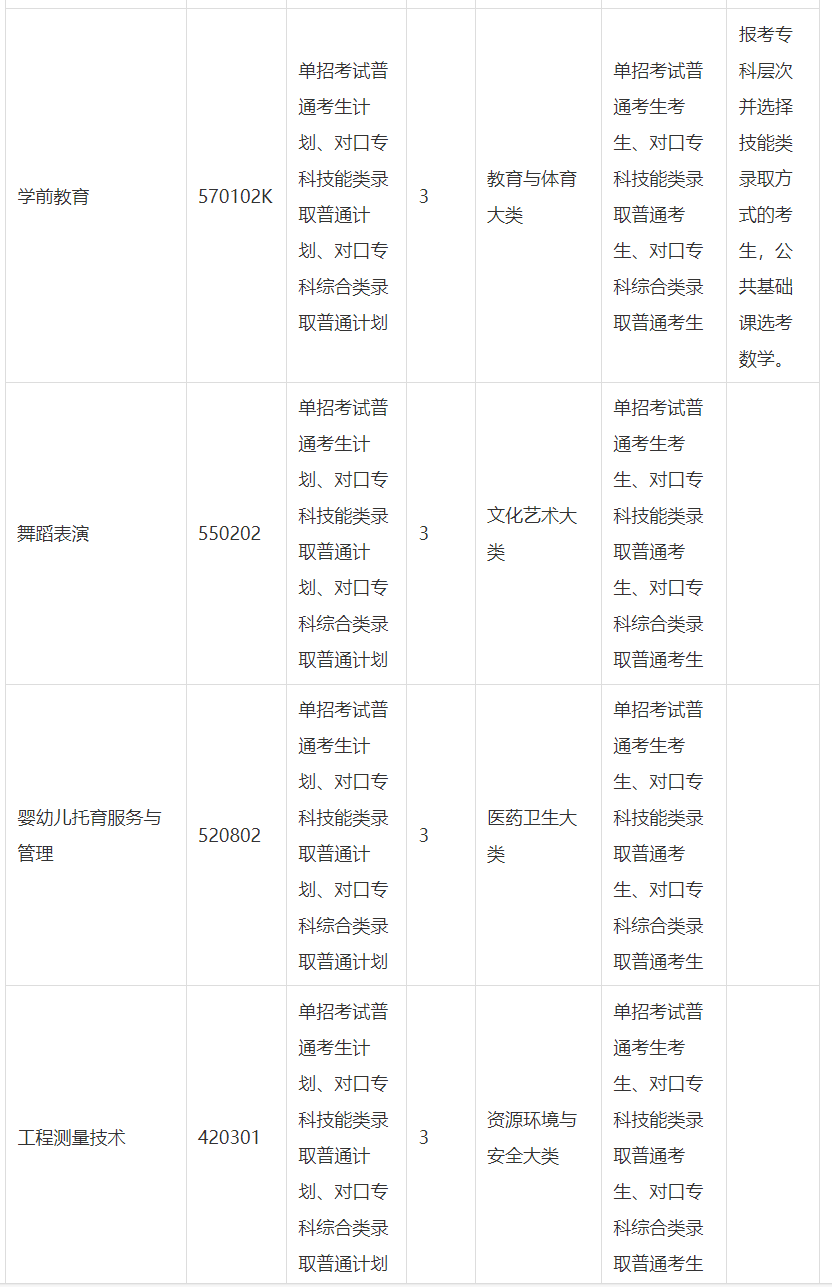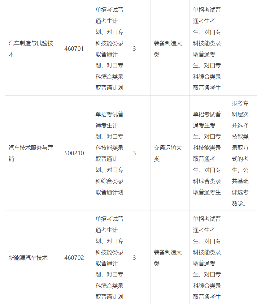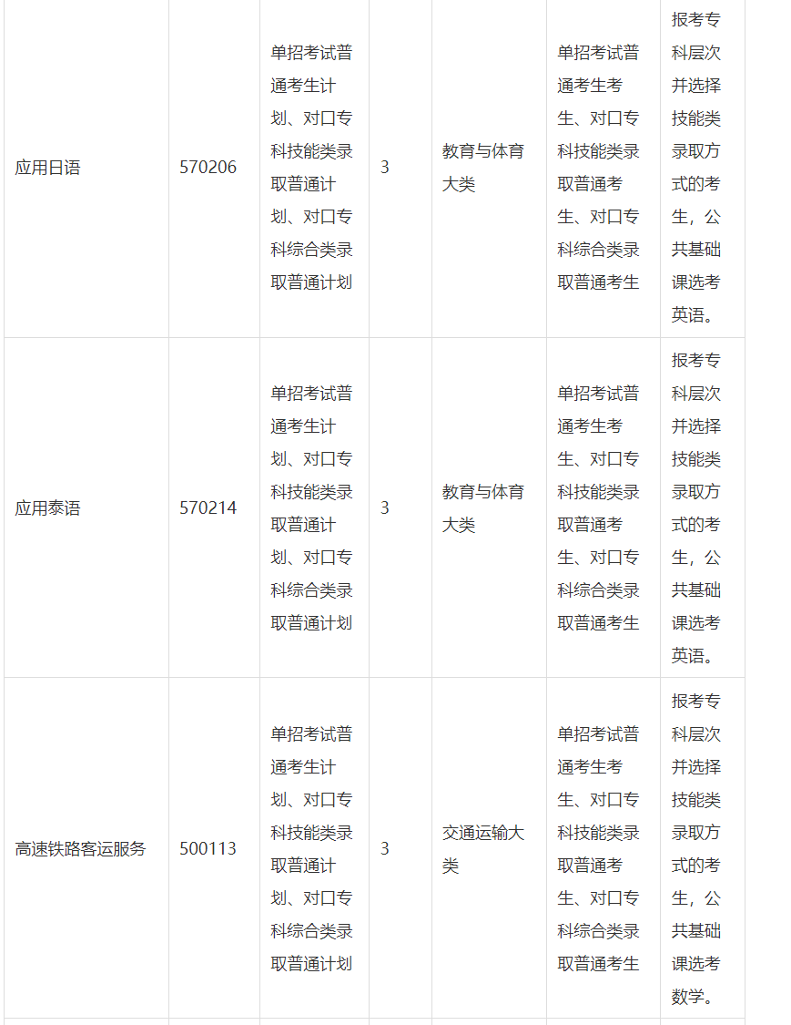 (4)报考专科层次并选择技能类录取方式的考生,其所属的职业教育专业大类为交通运输大类、旅游大类、教育与体育大类、公安与司法大类的,还应根据专业特点选考数学或英语。