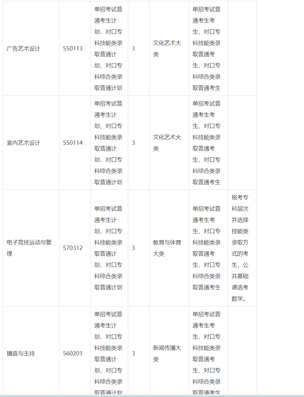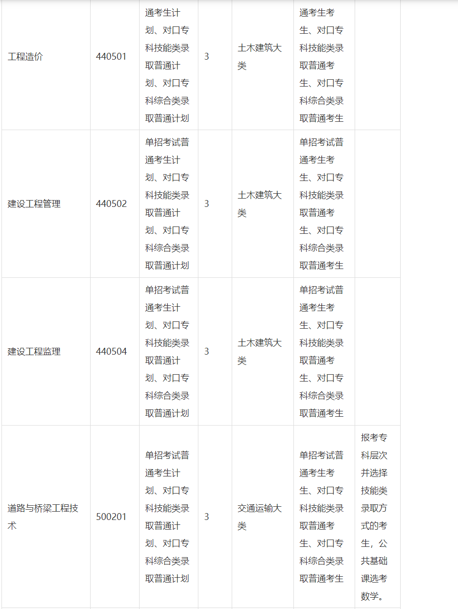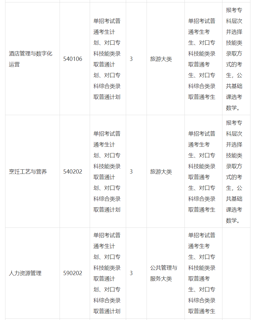(4)报考专科层次并选择技能类录取方式的考生,其所属的职业教育专业大类为交通运输大类、旅游大类、教育与体育大类、公安与司法大类的,还应根据专业特点选考数学或英语。