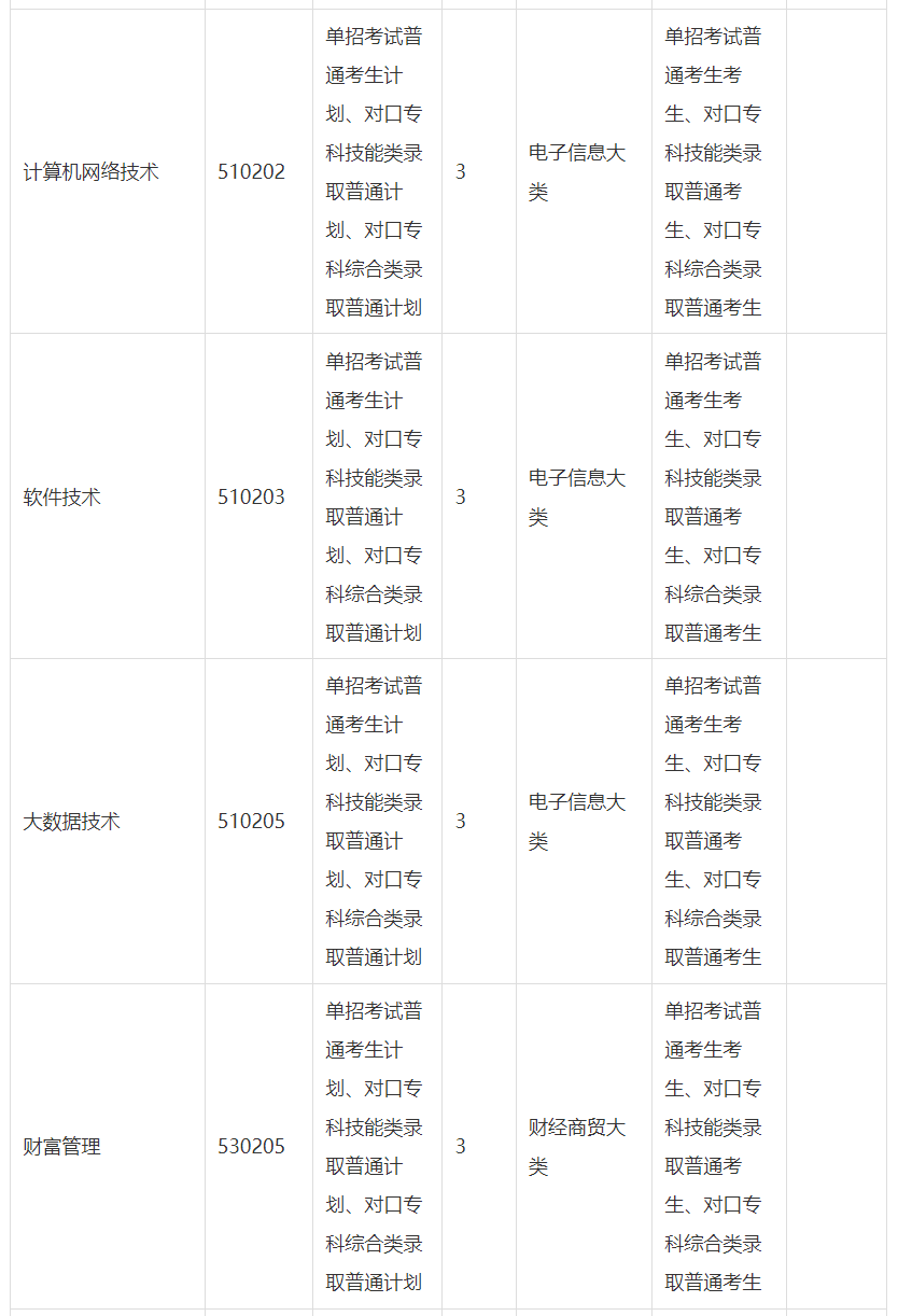 第七条 招生类型。职教高考招生类型主要包括对口招收中等职业学校毕业生统一考试(以下简称对口考试)、单独招收高中阶段学历毕业生及社会人员(包含退役军人、下岗职工、农民工和高素质农民等)统一考试(以下简称单招考试),我校共设4个招生类型。