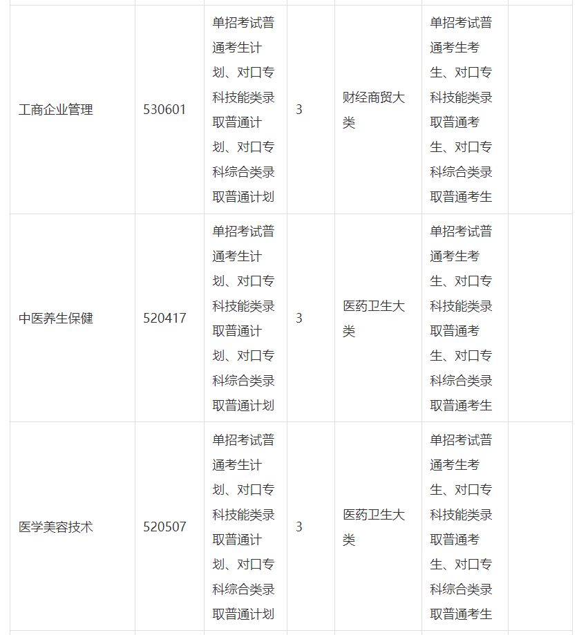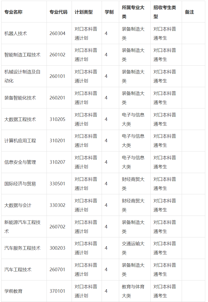 (二)招生专业。
