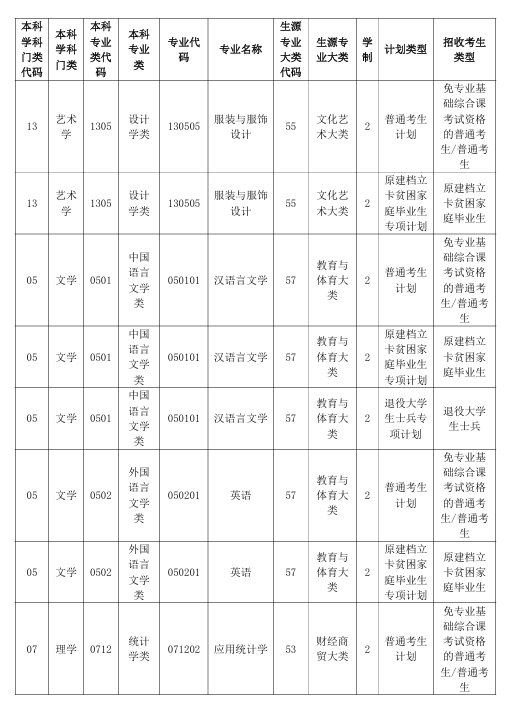 第十条 招生专业及人数