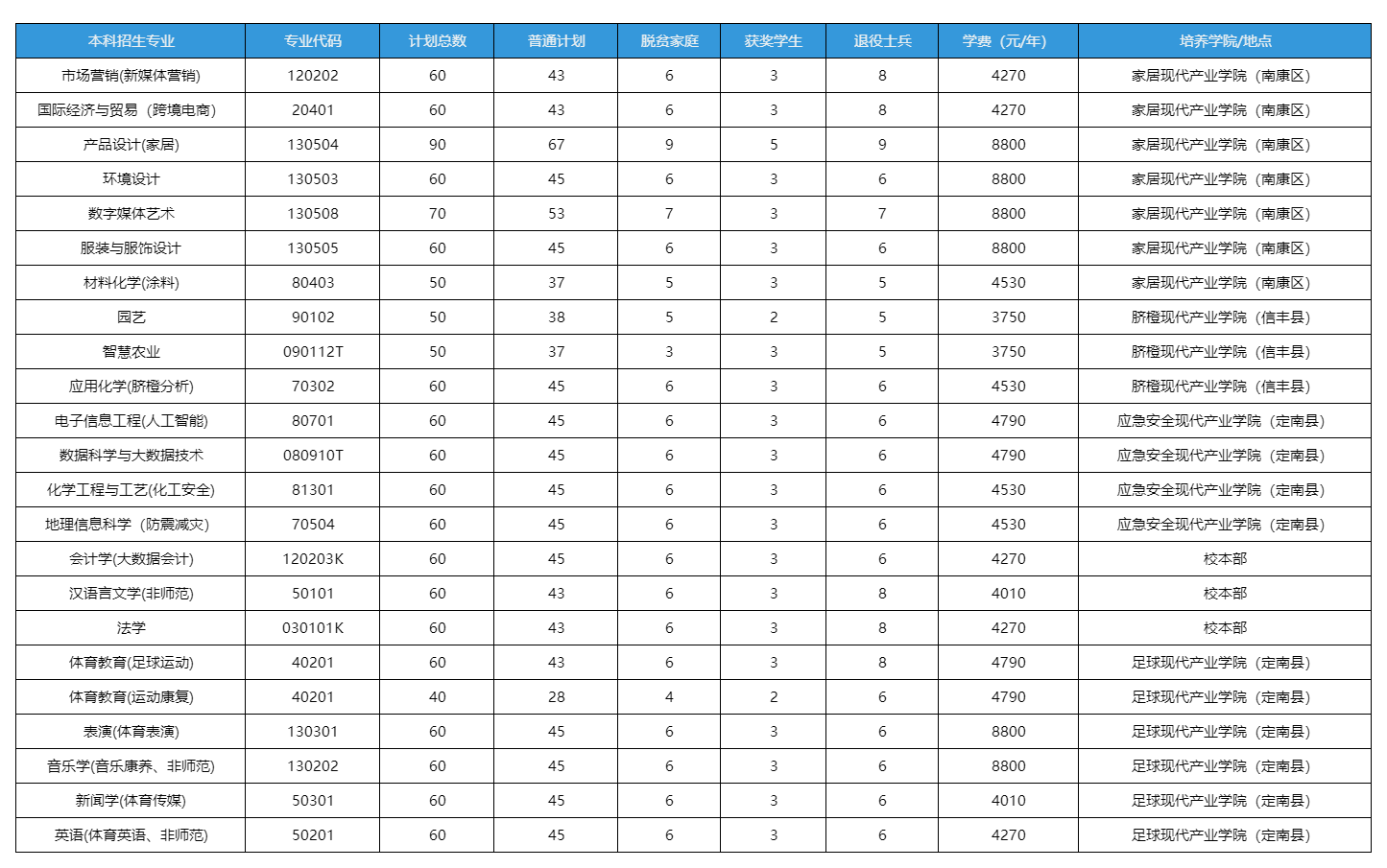 2025年赣南师范大学专升本招生计划总数2390人,其中校本部四大现代产业学院招生1370人,与4所公办高职院校联合培养招生1020人。计划类型涵盖普通考生计划、退役大学生士兵免试计划、脱贫家庭学生计划、获奖学生专项计划,无大国工匠专项计划。
