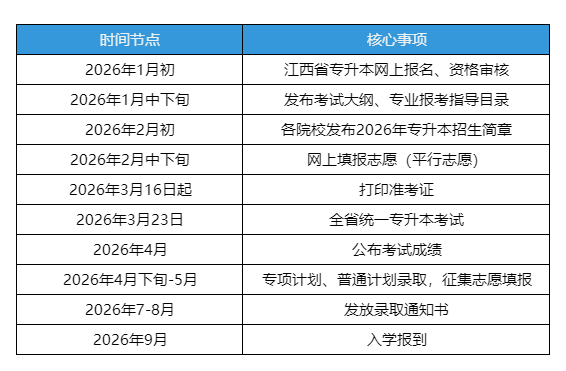 (二)2026年专升本关键时间节点(参考江西省官方发布)