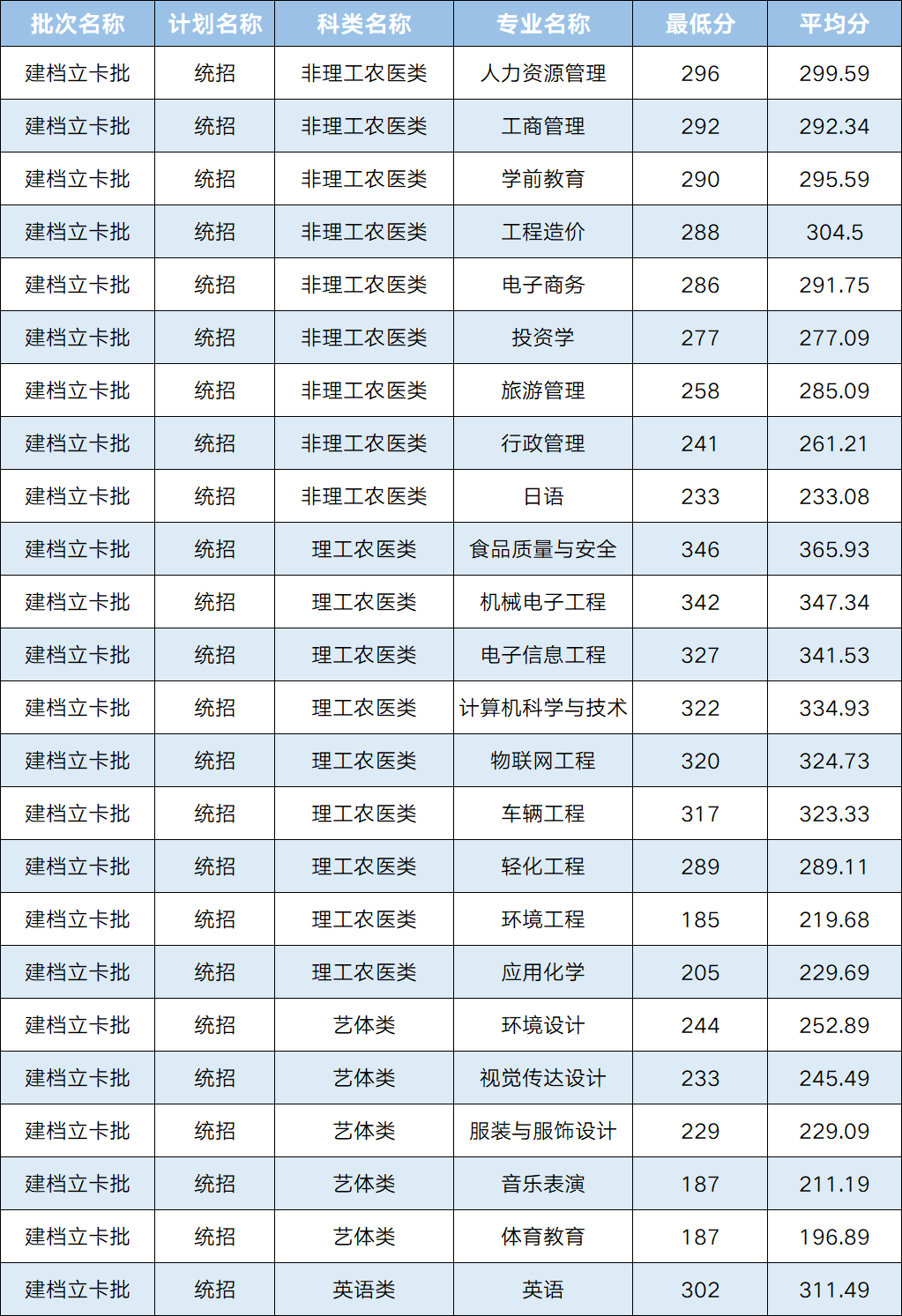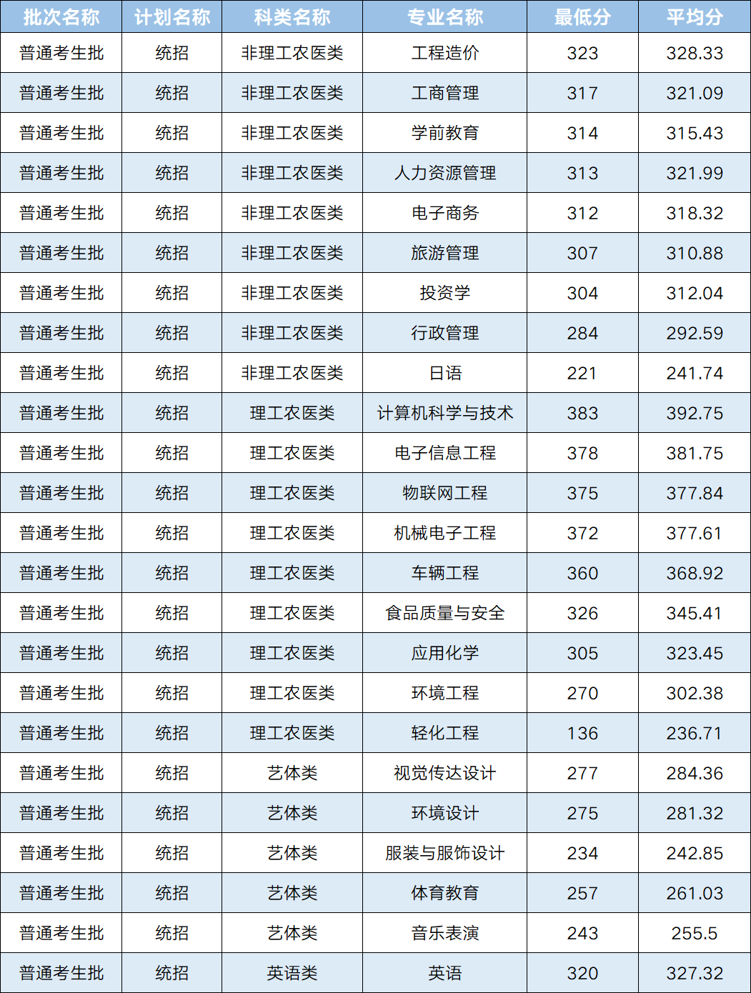 四川轻化工大学2025年专升本录取分数线已公布,具体情况见下表