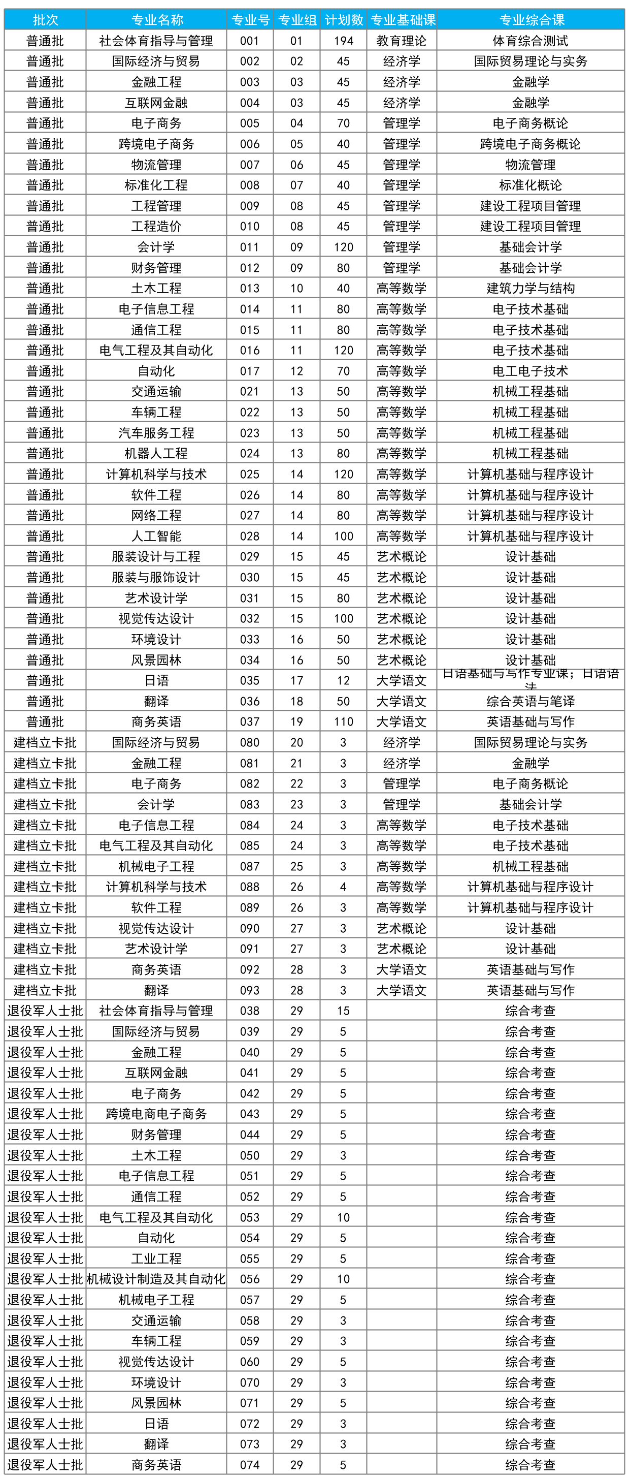 广东理工学院2026年普通高校专升本共开设37个招生专业总招生计划2864人,其中退役士兵195人,建档立卡43人。