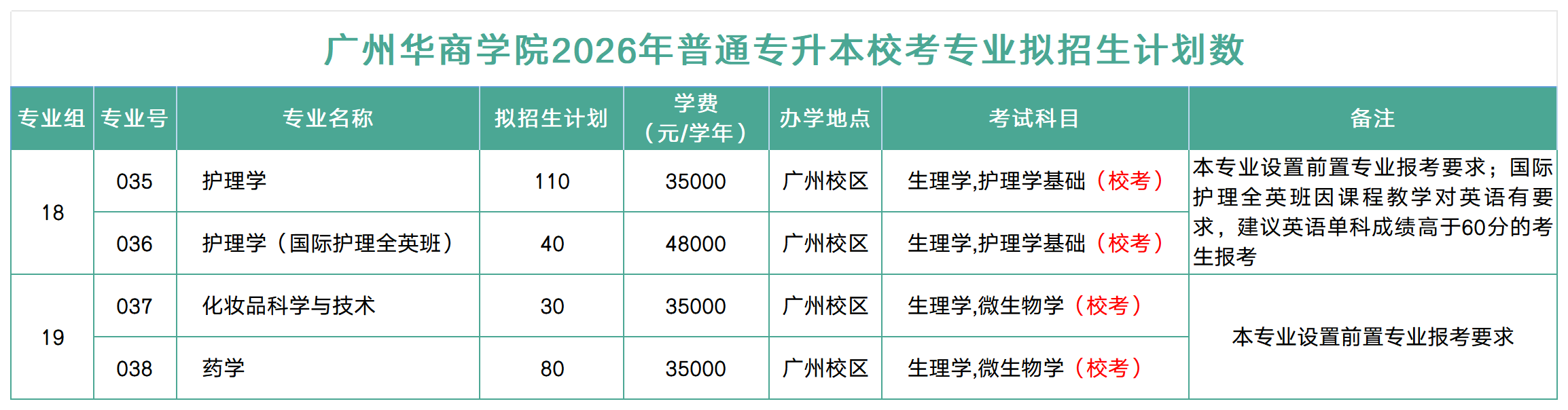 2026广东专插本广州华商学院校考专业拟招生计划数公布
